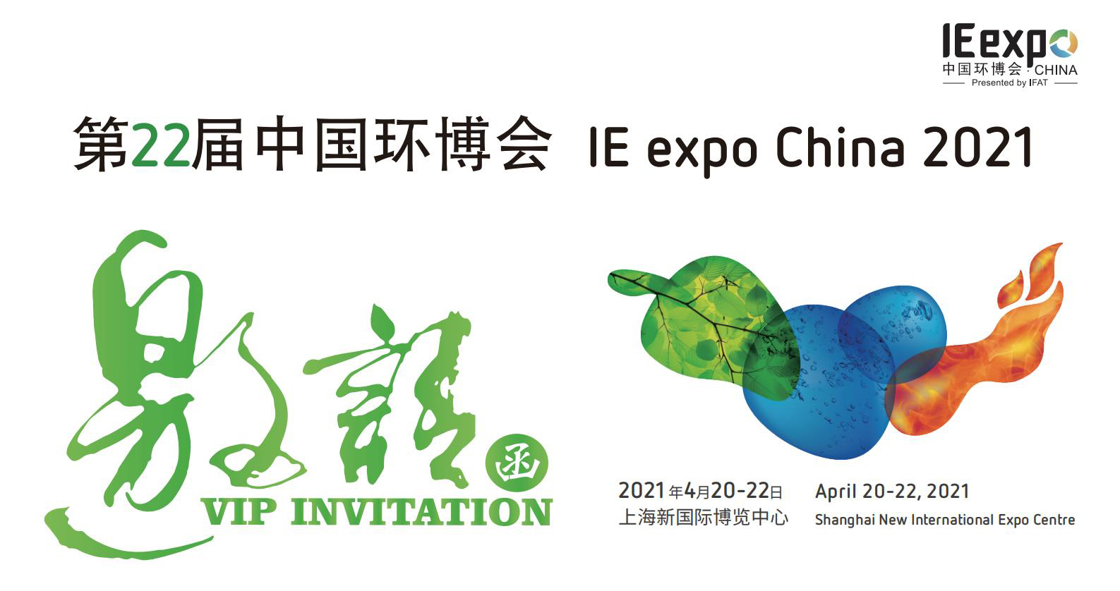 誠摯邀請您參加2021年4月20日-22日在上海新國際博覽中心舉行的第22屆中國環博會。